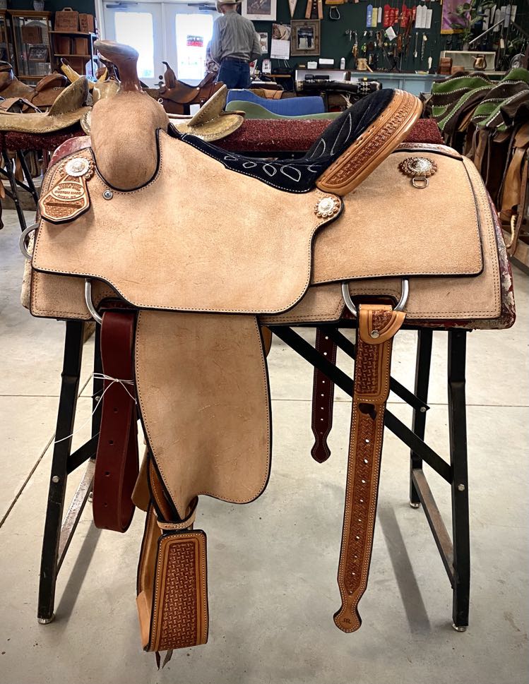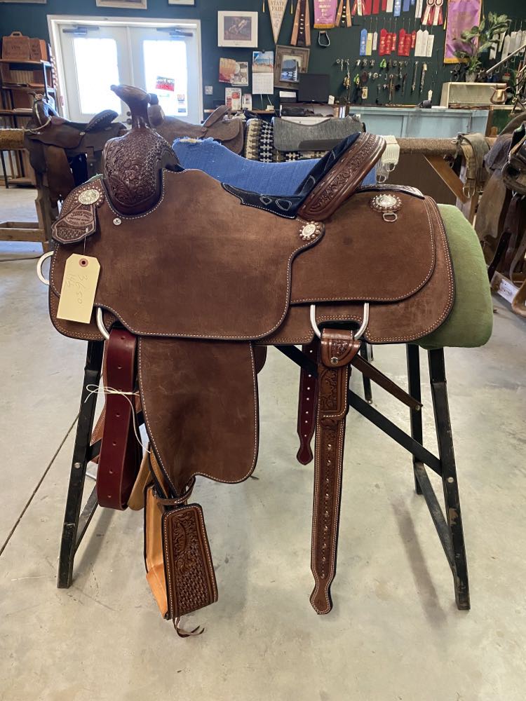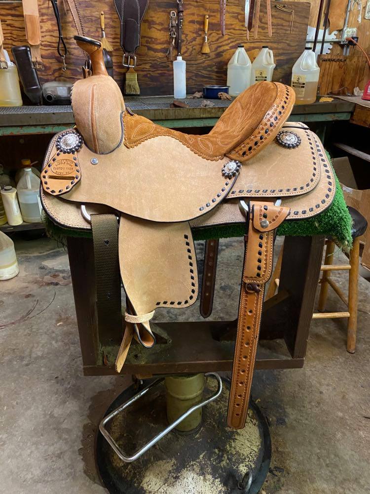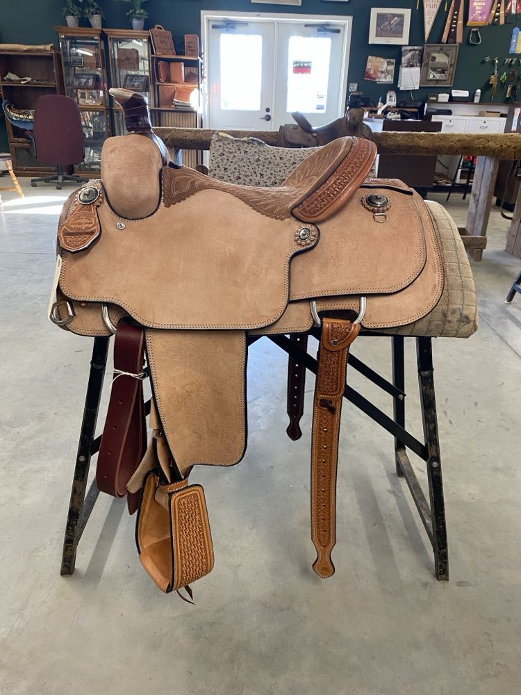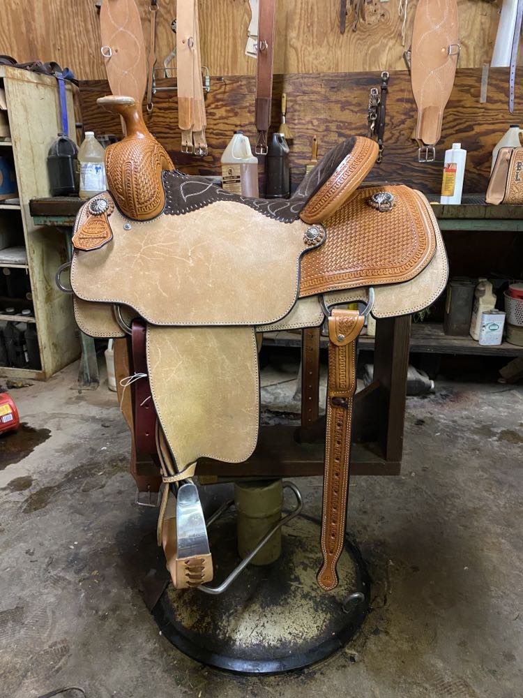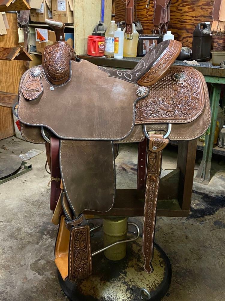 Natural Leather Rough Out Seat, Fender, and Skirts Bixby Oak and Barbed Wire Filler on Swells and Housings Tipton Binder Hard Seat