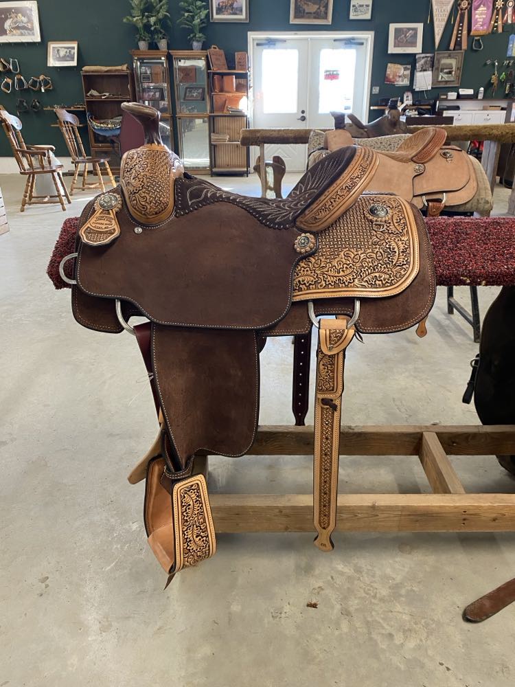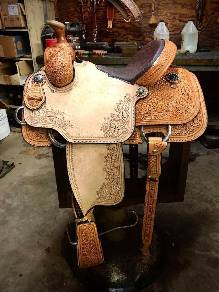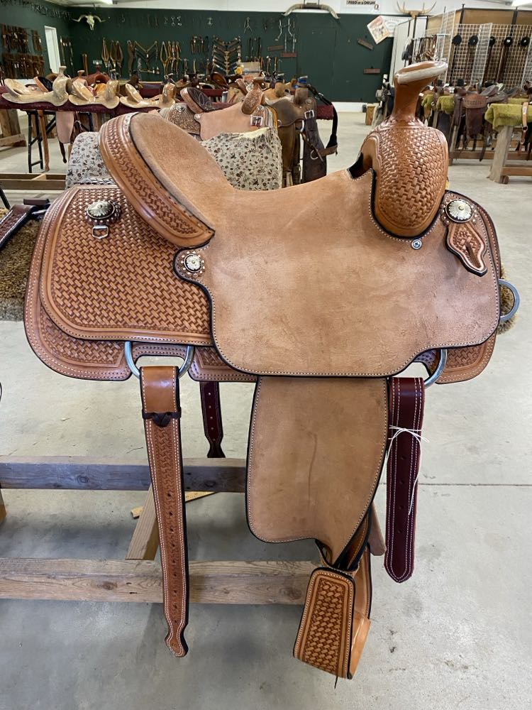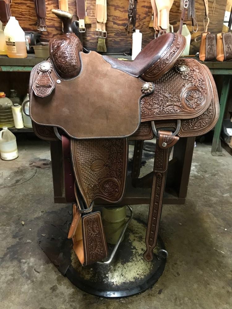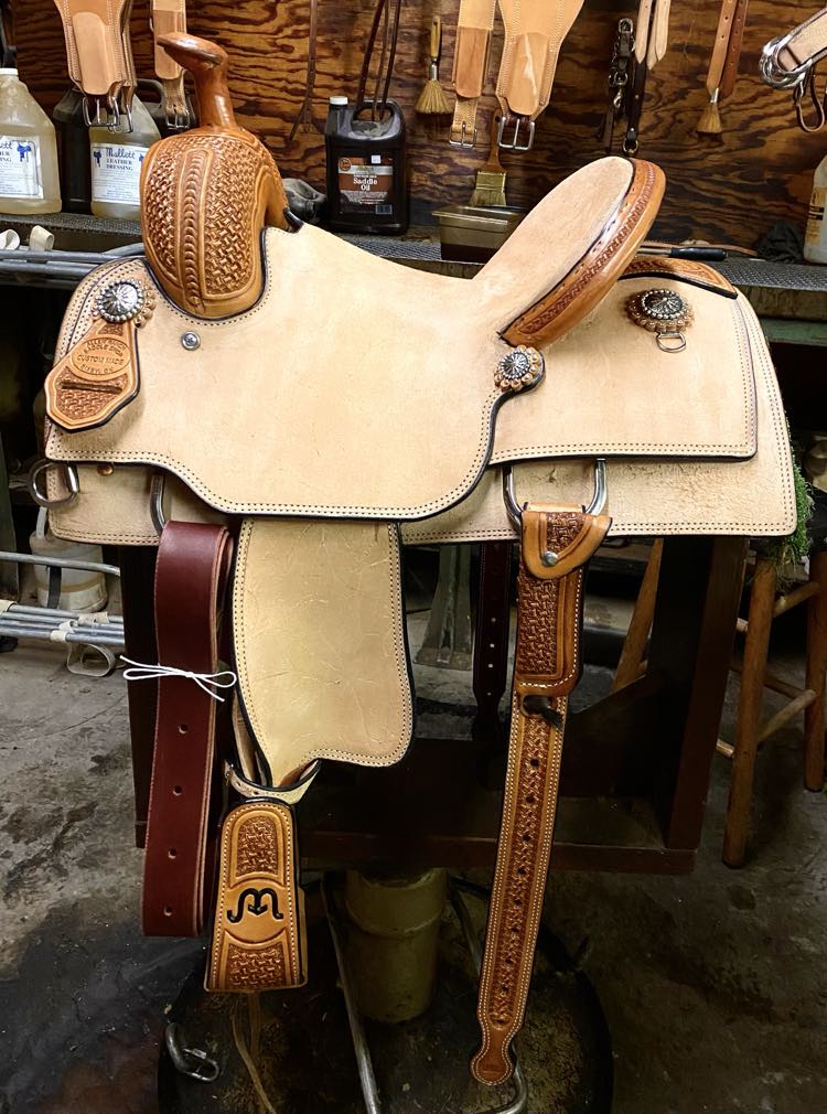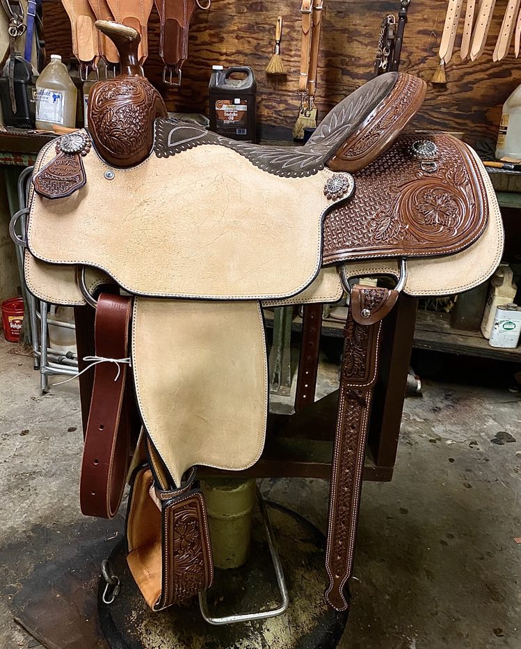 Natural Leather Rough Out Seat, Fender, and Skirts Bixby Oak and Barbed Wire Filler on Swells and Housings Tipton Binder Hard Seat